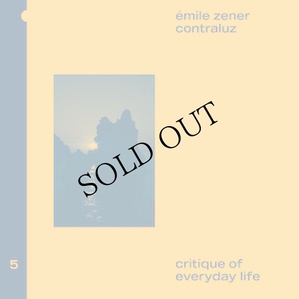 限定150セット、このレーベル激推しです!!現行の優れたミュージック・コンクレート作家を手掛ける、バルセロナ発Critique of Everyday Life!!作品毎に興味深いテーマを掲げ、主にフィールドレコーディングとアナログシンセを用いた秀逸なミュージック・コンクレートの制作に勤しむ音楽家Emile Zener。本作は経済システム、海洋生物の生態系、気象パターンをコンセプトに、3つの長編コンクレートを作り上げ纏めた3CDセット[Contraluz]。兎に角全体の構造が非常にカッコ良く、マッシブな電子持続音やストリングスなども取り入れ緻密な音風景構築を展開。マスタリングはStephan Mathieuが担当、GRMファンからサウンドアート好きまで是非。