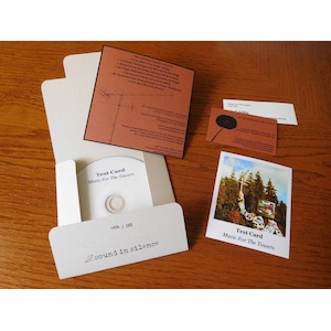 This is a limited edition of 200 handmade and hand-numbered collectible copies. It is packaged in a lovely hand-stamped 127mm x 127mm 280 gsm cream cardboard envelope with the front cover image printed on a polaroid style photo paper and an insert sheet containing tracklist and information printed on a 190 gsm reddish-brown cardboard. It also comes bundled with a download code coupon and a Sound In Silence card.