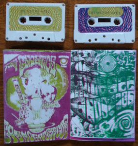 Double cassettes come with a 48 page silkscreened/photocopied fanzine-style booklet.